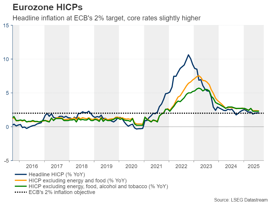 Turning to the Eurozone, the ECB kept interest rates unchanged at its latest meeting, maintaining a positive view on growth and inflation. At the press conference following the decision, President Lagarde noted that the Bank is in a “good place”, with inflation being where they wanted it to be and with global trade uncertainty easing after several nations, including the EU, reached common ground with the US.