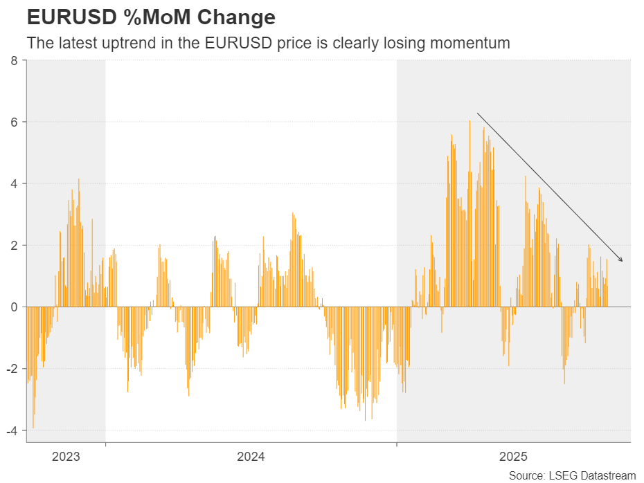 What’s more, the euro/dollar uptrend that began at the start of the year has been losing momentum in recent months.