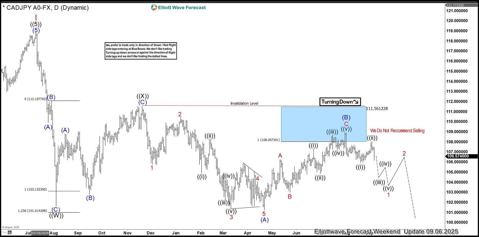CAD/JPY latest daily Elliott Wave chart from 9.06.2025