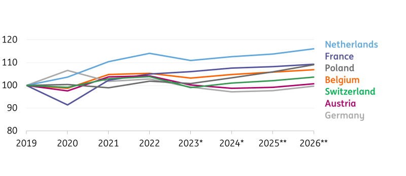 Source: Eurostat, *estimates and forecasts ING Research (8 May 2025)