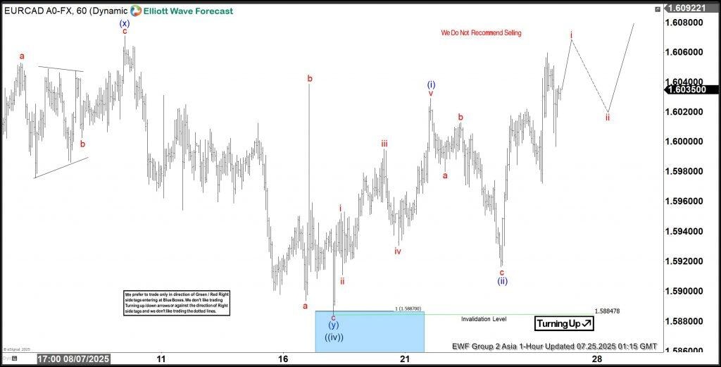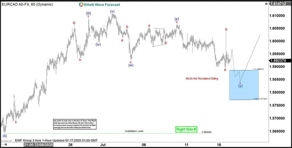 On July 17, 2025, we shared the chart above with members. Earlier, we had identified a 7-swing pullback as wave ((iv)). In addition, we marked the 1.5886–1.5771 area as the blue box extreme. From that zone, we recommended a Long opportunity to members.