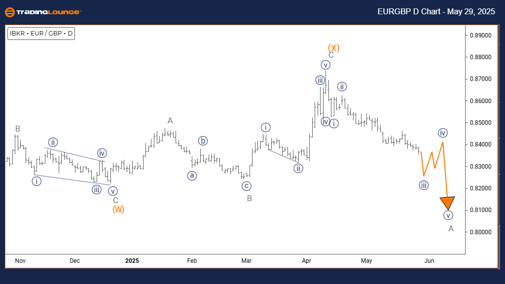 The confirmation of Orange Wave 4’s completion and the emergence of Orange Wave 5 indicate sustained selling pressure. Since this movement lies within Navy Blue Wave 3, the bearish trend appears ongoing, with more room for decline before potential exhaustion. This wave configuration gives forex traders a clear picture of where EURGBP stands within its broader cycle.
