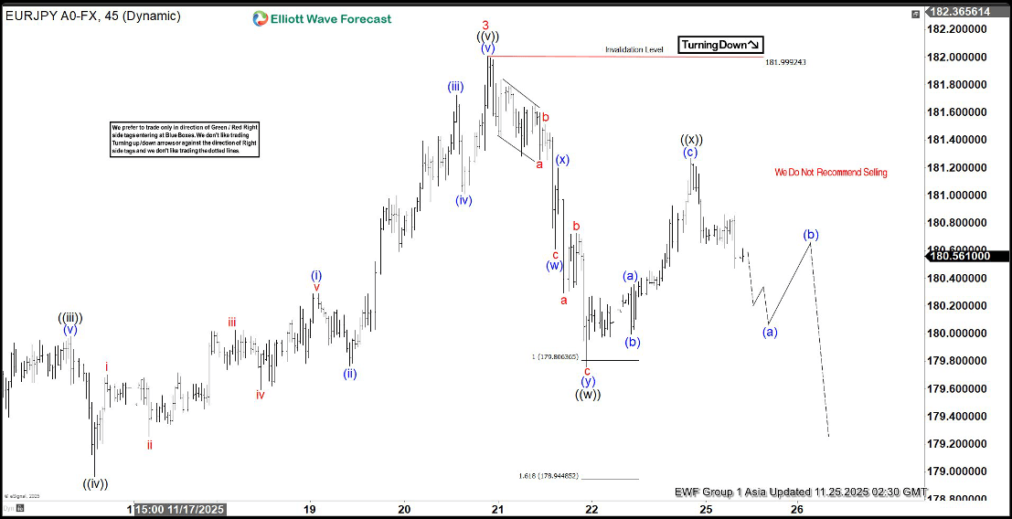 EUR/JPY 45-minute Elliott Wave chart from 11.21.2025