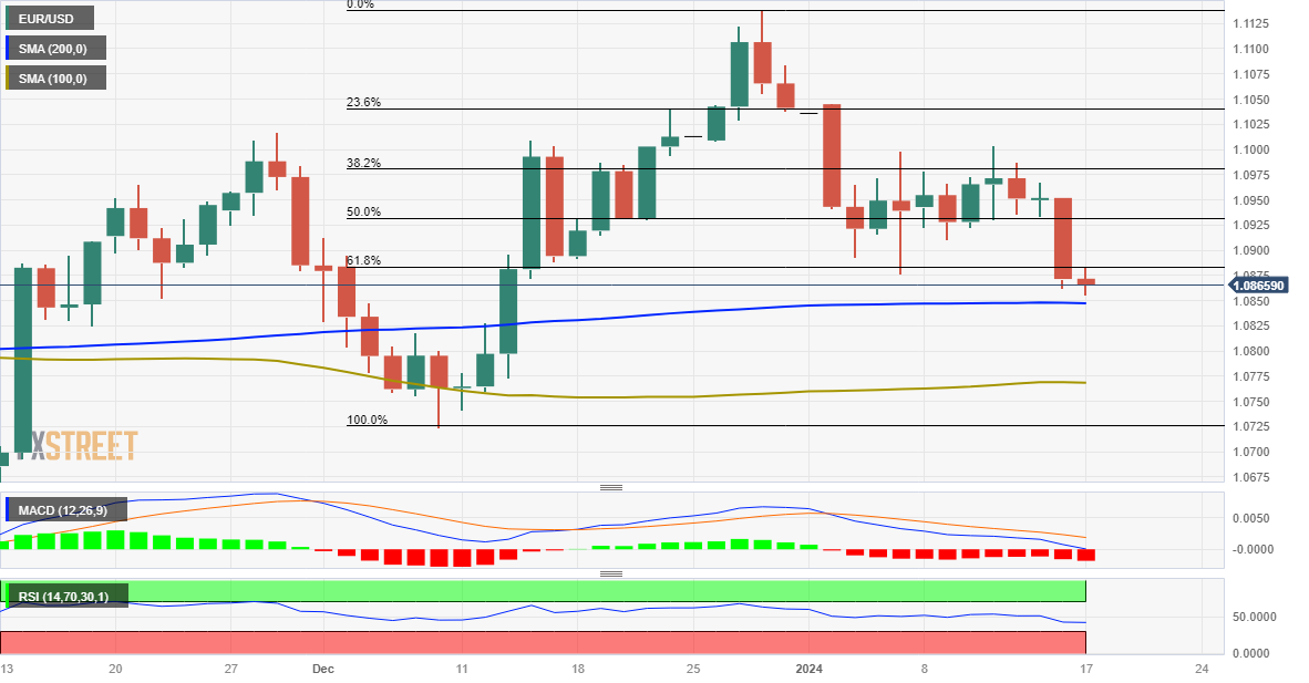The EUR/USD pair remains under some selling pressure for the second straight day on Wednesday and drops to its lowest level since December 13, closer to mid-1.0800s, or the 200-day Simple Moving Average (SMA) during the early European session. The US Dollar (USD) builds on this week's breakout momentum through a short-term trading range and jumps to over a one-month peak, which, in turn, is seen as a key factor weighing on the major.