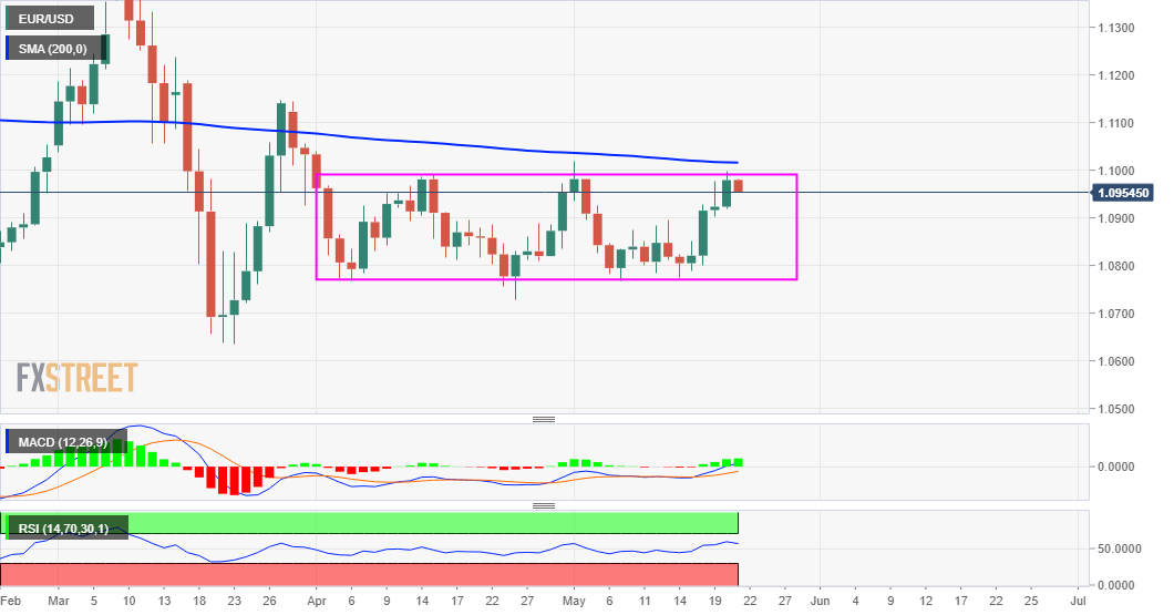 From a technical perspective, the pair stalled its positive momentum near a resistance marked by the top end of a multi-week-old trading range. Hence, it will be prudent to wait for some strong follow-through buying to confirm a near-term bullish breakout and positioning for any further near-term appreciating move. Any fresh move up might continue to confront some resistance near the 1.1000 mark, which is closely followed by the very important 200-day SMA, around the 1.1015-20 region. A convincing breakthrough the mentioned barrier will be seen as a fresh trigger for bullish traders and set the stage for a move towards reclaiming the 1.1100 round-figure mark with some intermediate resistance near the 1.1040-50 region.