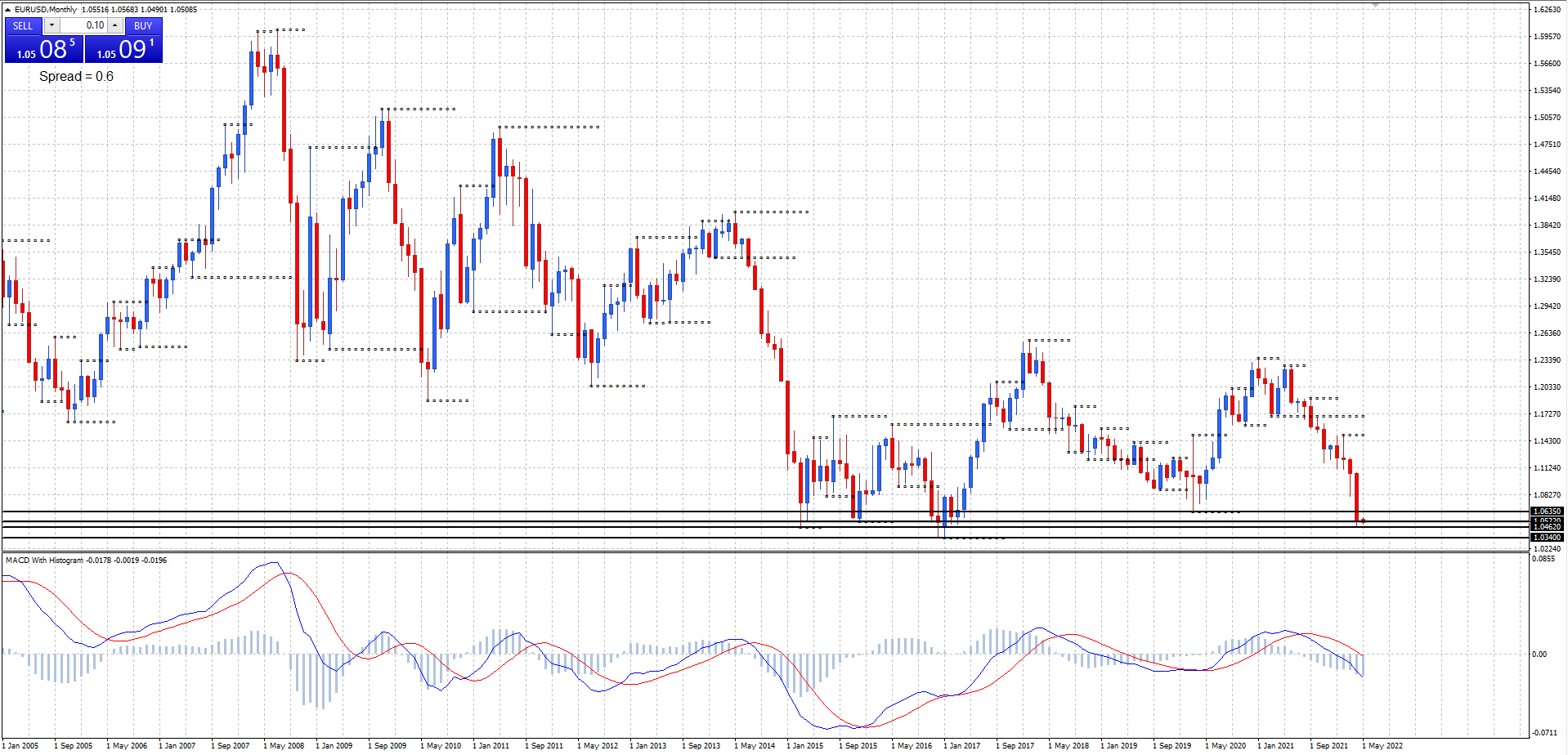 Monthly support at 1.0522, 1.0462, and 1.0340, resistance at 1.0635.