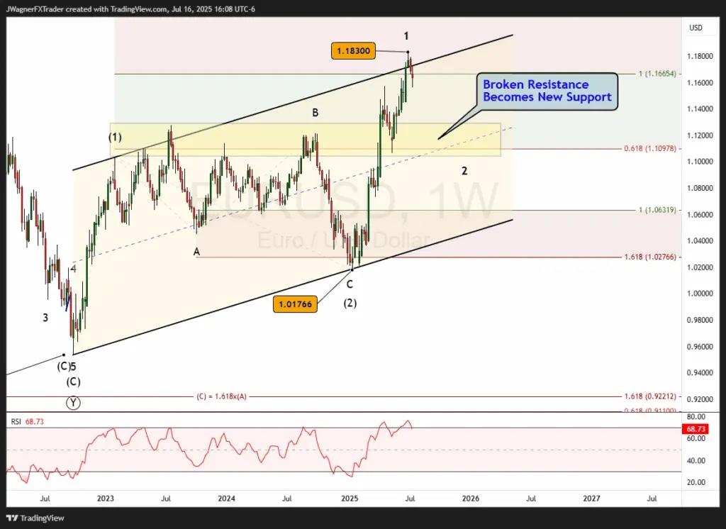 As the new downtrend develops, further review of wave structure will clarify where the market stands in the larger Elliott wave context and help identify strategic opportunities in EUR/USD.