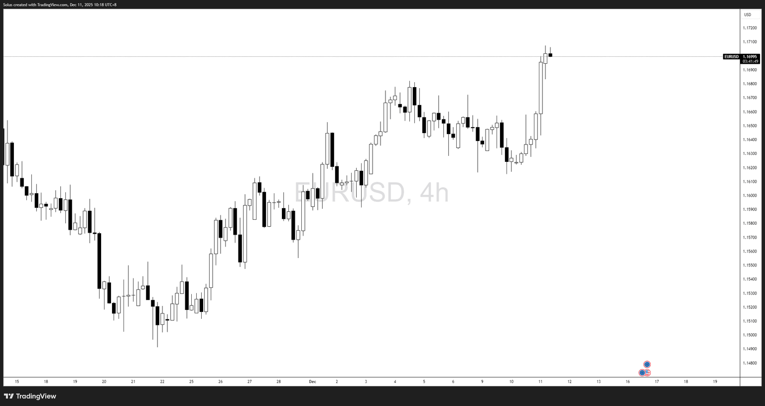 EUR/USD traded sharply higher following the Federal Reserve’s December rate cut, a move that financial markets had largely priced in—but the reaction shows that the tone of Powell’s press conference carried even more weight.