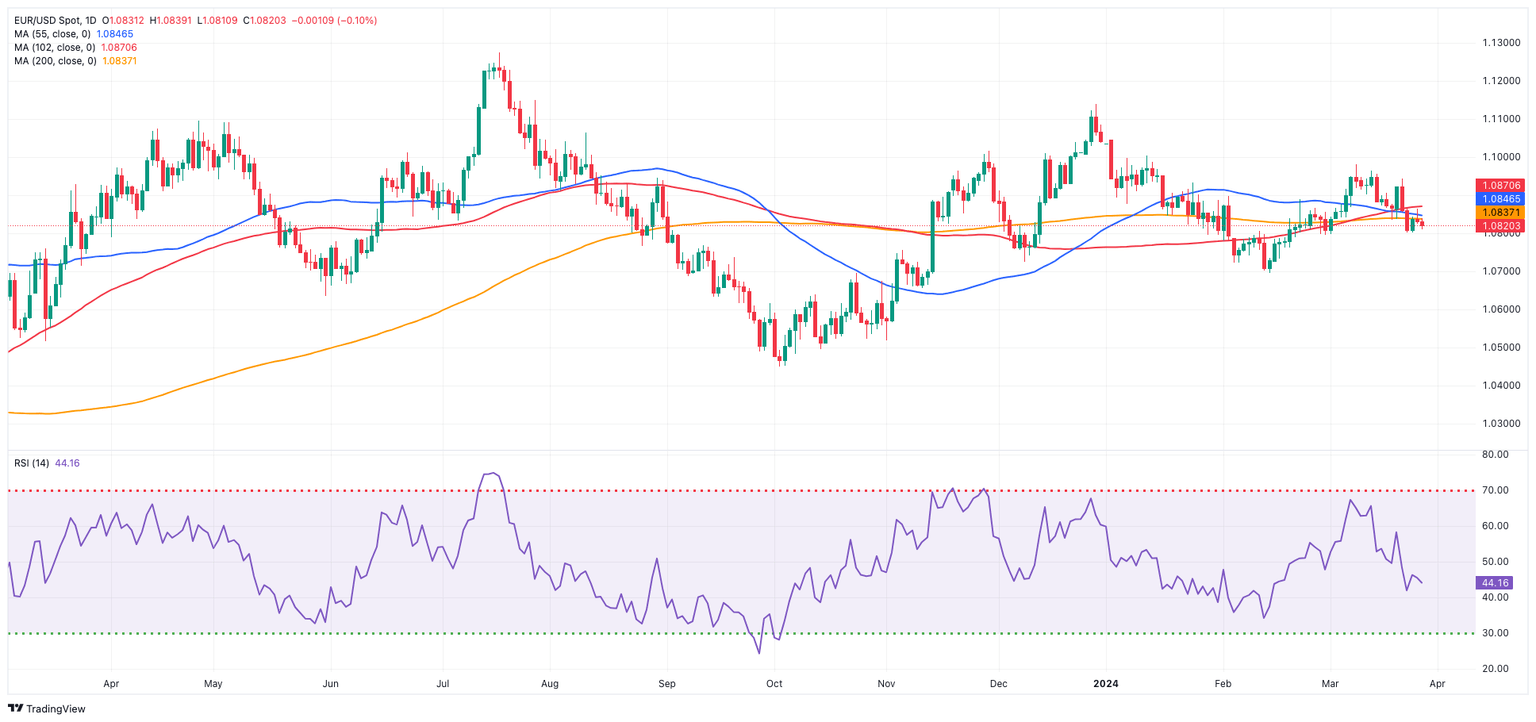 The modest uptick in the US Dollar (USD) led to a similarly humble decline in EUR/USD, with the pair revisiting the 1.0810 zone, and the USD Index (DXY) flirting with the top of the recent range near 104.50.