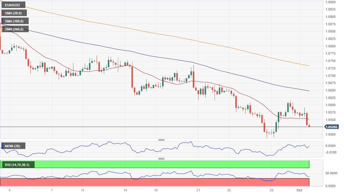 The EUR/USD pair resumed its decline on Monday, following a modest uptick at the beginning of the day. The pair peaked at 1.0591 ahead of London’s opening, to slide below the 1.0550 level ahead of Wall Street’s opening. The market mood was upbeat at the weekly opening. The United States (US) avoided a government shutdown after Congress concluded a last-minute agreement, while Chinese data was generally encouraging.