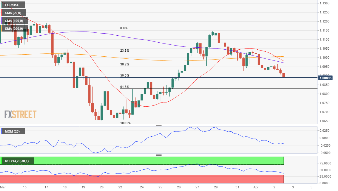 - EUR/USD about to fall below the 50% retracement of its latest daily advance.