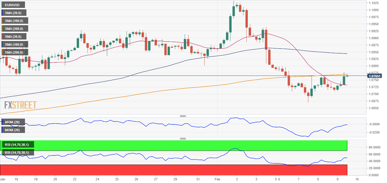 - EUR/USD grinds higher and approaches its weekly high at 1.0798.