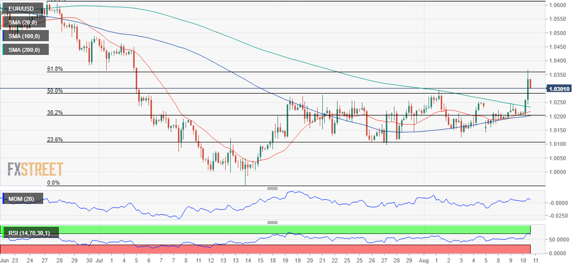 - EUR/USD holds on to gains above 1.0300 and could extend its rally once above 1.0360.
