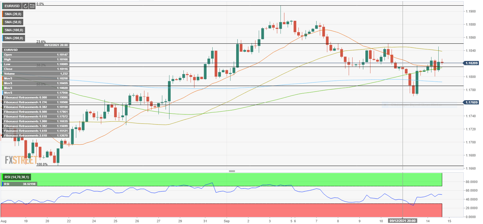 Following the upsurge seen in the early American session, EUR/USD returned below the 20, 50 and 100-period SMAs on the four-hour chart. Moreover, the Relative Strength Index (RSI) indicator on the same chart failed to hold above 50, suggesting that bulls are having a tough time staying in control of the action. The bearish pressure could increase with a daily close below 1.1790, where the 200-period SMA and the Fibonacci 50% retracement of the late-August early-September uptrend is located.