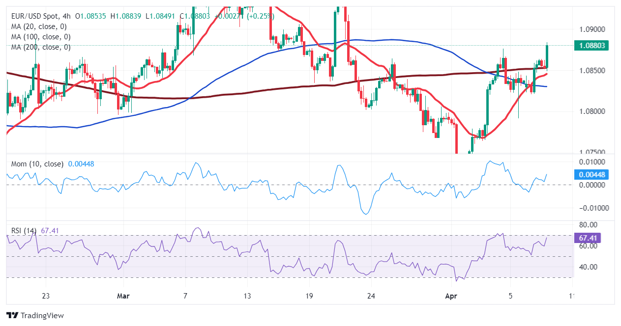 - EUR/USD gains bullish traction in the near term and faces resistance at 1.0910.