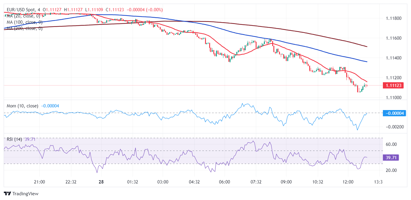 In the near term, and according to the 4-hour chart, the risk skews to the downside. Technical indicators have pierced their midlines with strength and are currently approaching oversold readings. At the same time, the pair has broken below a flat 20 SMA, while the longer ones are losing their upward momentum far below the current level. A clear break below the 1.1100 mark could spur additional selling, although it is possible bulls will take their chances around the level.