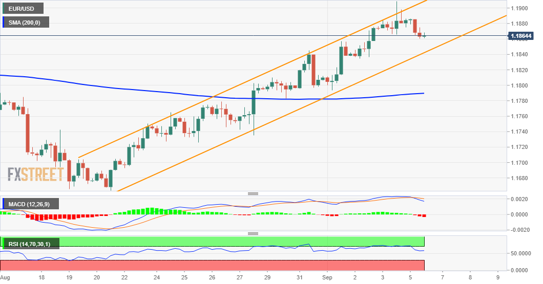 The EUR/USD pair kicked off the new week on a defensive note and extended Friday's late pullback from levels just above the 1.1900 mark, or the highest since late June. The pullback was sponsored by a goodish pickup in the US dollar demand, though any meaningful corrective slide still seems elusive ahead of the European Central Bank (ECB) meeting on Thursday.