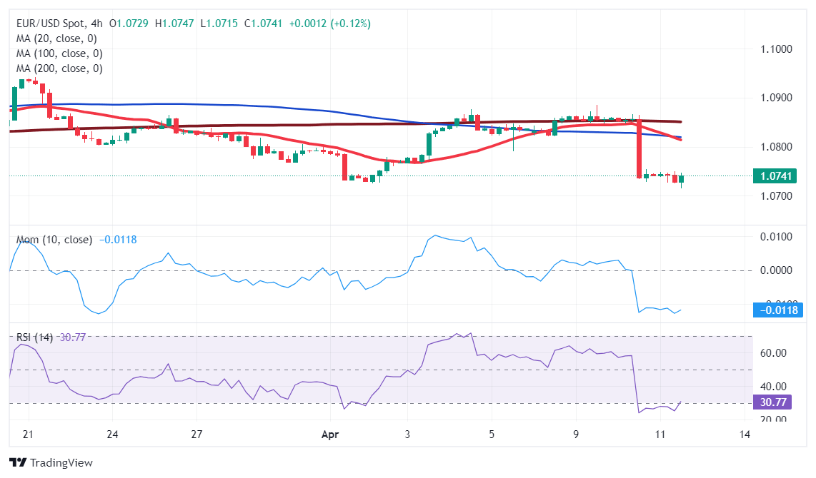 As ECB's Lagarde kick starts her speech, EUR/USD hovers around 1.0740, little changed on a daily basis. Stock markets got a modest boost, which limited US Dollar demand. The pair, however, is yet to react to the ECB's decision