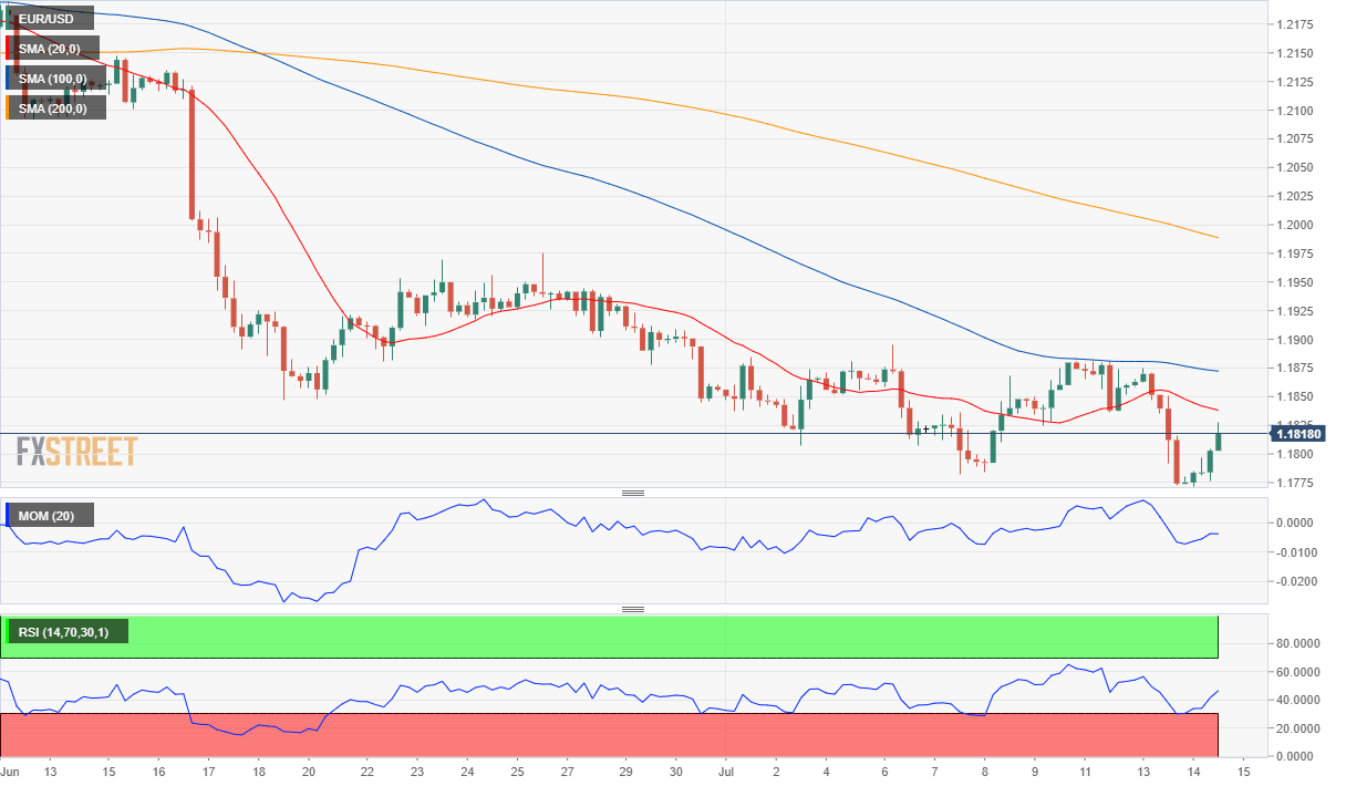 The EUR/USD pair recovered nicely from an intraday low of 1.1771, also a fresh three-month low, and trades above the 1.1800 level. The American dollar maintained the positive tone through the first half of the day, giving up as Federal Reserve chief Powell’s testimony looms. The head of the US central bank will testify on the Semi-Annual Monetary Policy Report before the House Financial Services Committee.