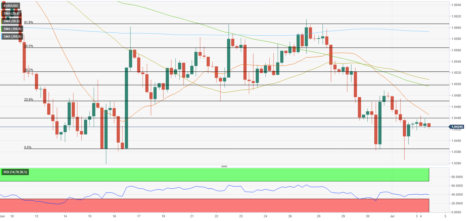 On the upside, 1.0440 (static level, 20-period SMA) forms interim resistance ahead of 1.0470 (Fibonacci 23.6% retracement of the latest downtrend) and 1.0500 (psychological level, 100-period SMA). Initial support is located at 1.0400 before 1.0380 (static level) and 1.0360 (static level).