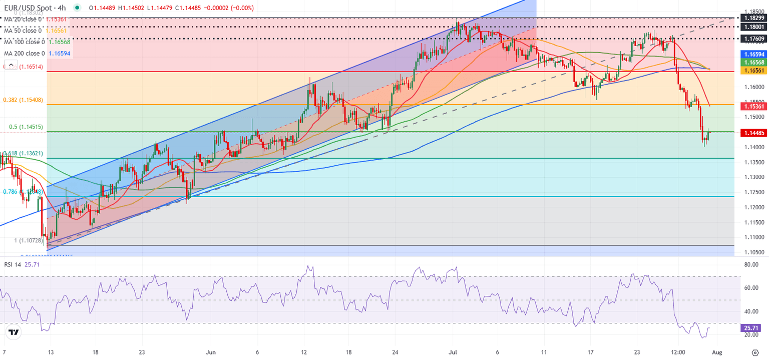 EUR/USD lost more than 1% on Wednesday and touched its lowest level since early June near 1.1400. Although the pair trades in positive territory early Thursday, the technical outlook shows no signs of a reversal.