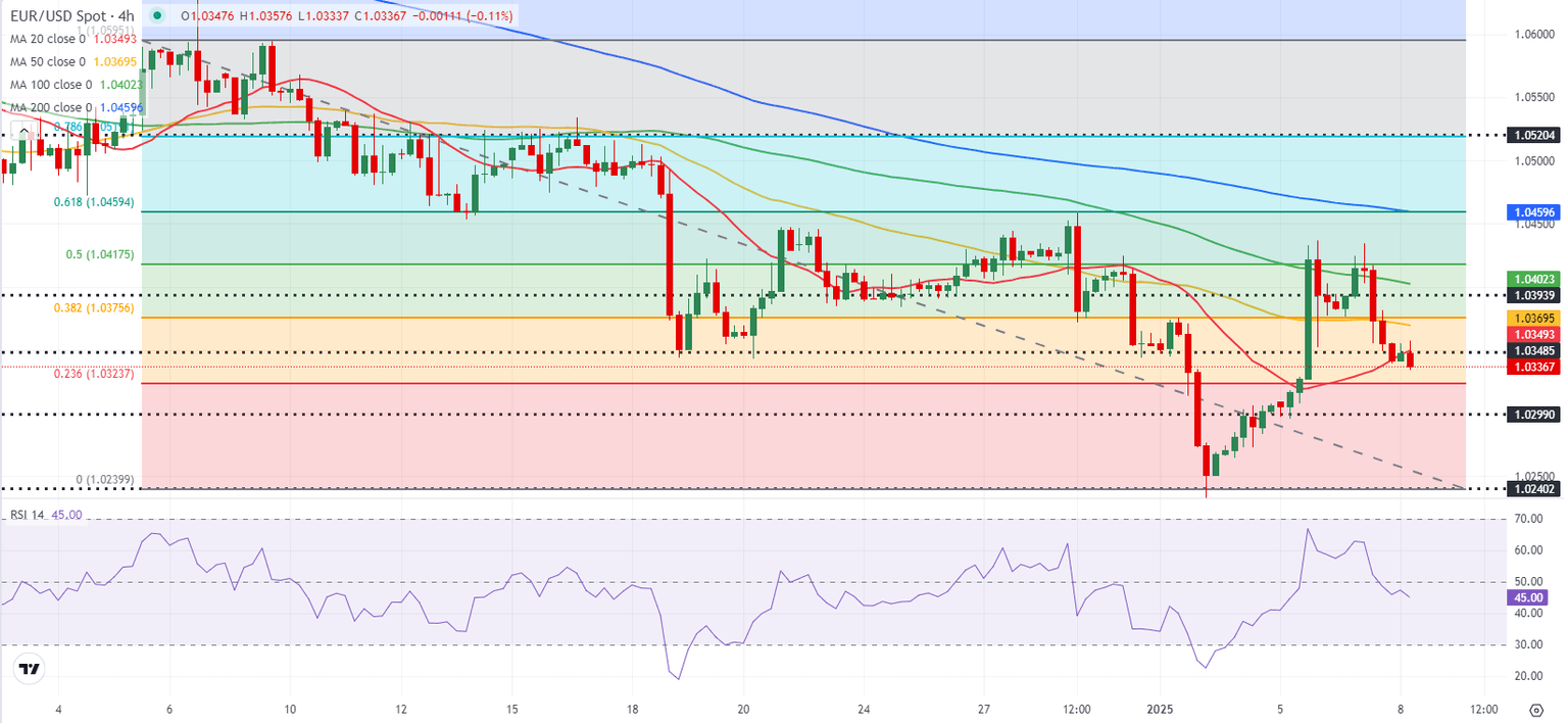 - EUR/USD trades slightly below 1.0350 after closing in negative territory on Tuesday.