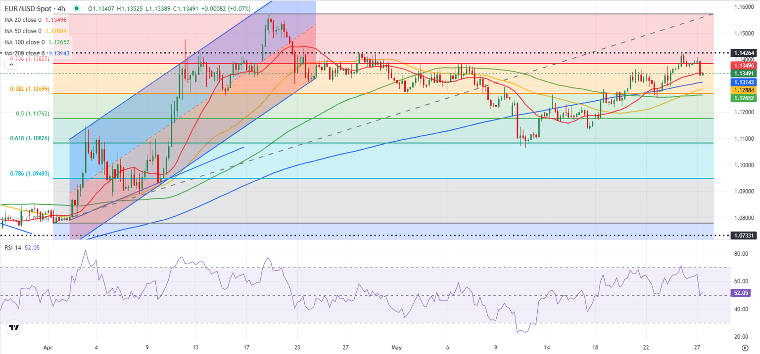 - EUR/USD trades in negative territory near 1.1350 on Tuesday.