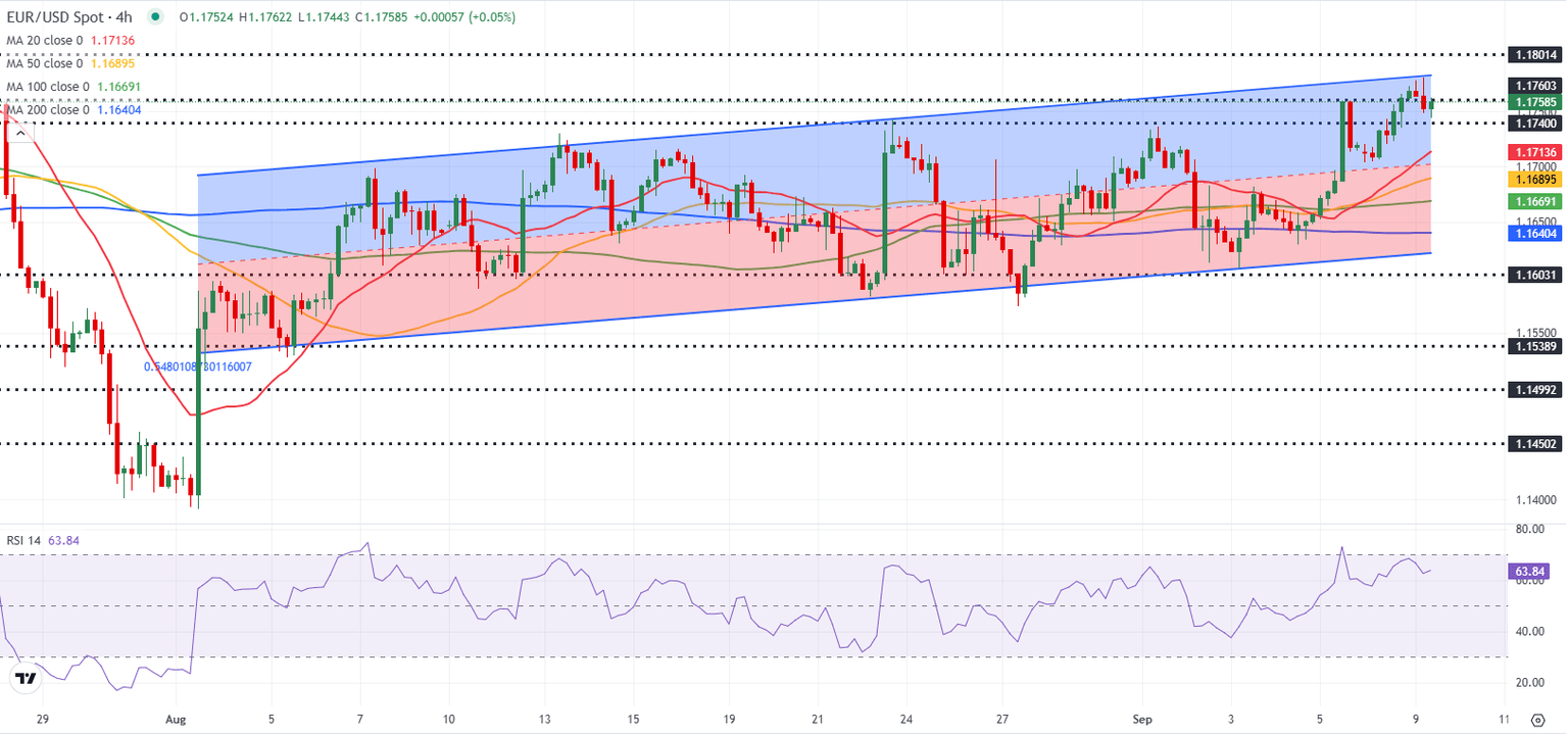 Meanwhile, French lawmakers voted to oust Prime Minister François Bayrou on Monday and President Emmanuel Macron's office stated that he will appoint a new prime minister "in a matter of days." As this outcome was widely anticipated, the market reaction was muted. Nevertheless, the main concern about France's fiscal health remains in place, and investors could turn hesitant to bet on an extended Euro rally until there is clarity.