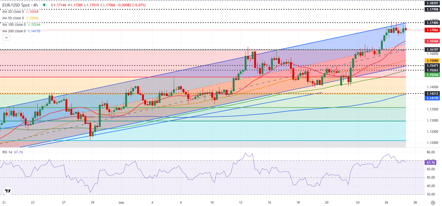 EUR/USD retreated slightly after reaching its highest level since September 2021 near 1.0750 but closed the day in positive territory on Thursday. The pair holds steady and trades at around 1.1700 in the European morning on Friday as markets await the US Personal Consumption Expenditures (PCE) Price Index data for May.