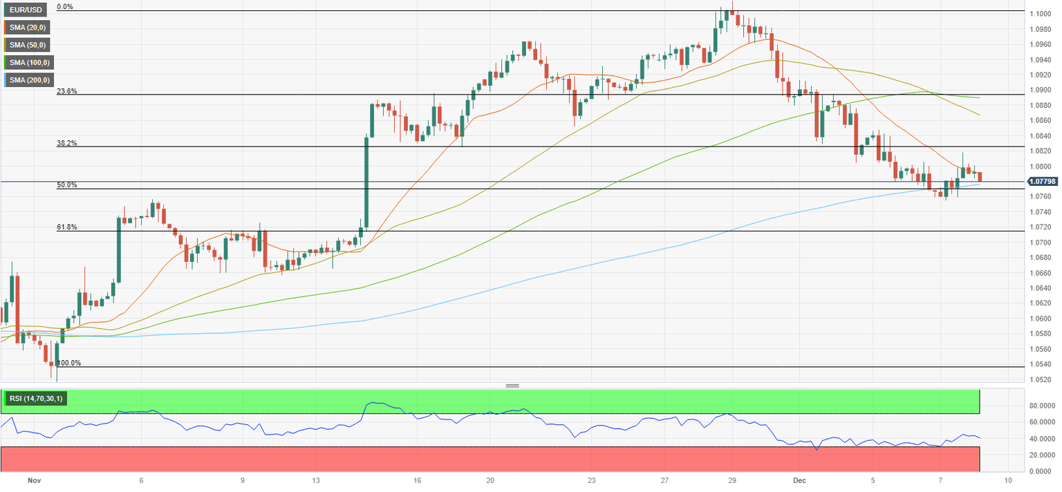 EUR/USD benefited from broad-based US Dollar (USD) weakness on Thursday and registered daily gains for the first time since November 28. Early Friday, the pair holds steady slightly below 1.0800 as market participants refrain from taking large positions ahead of the US November jobs report.