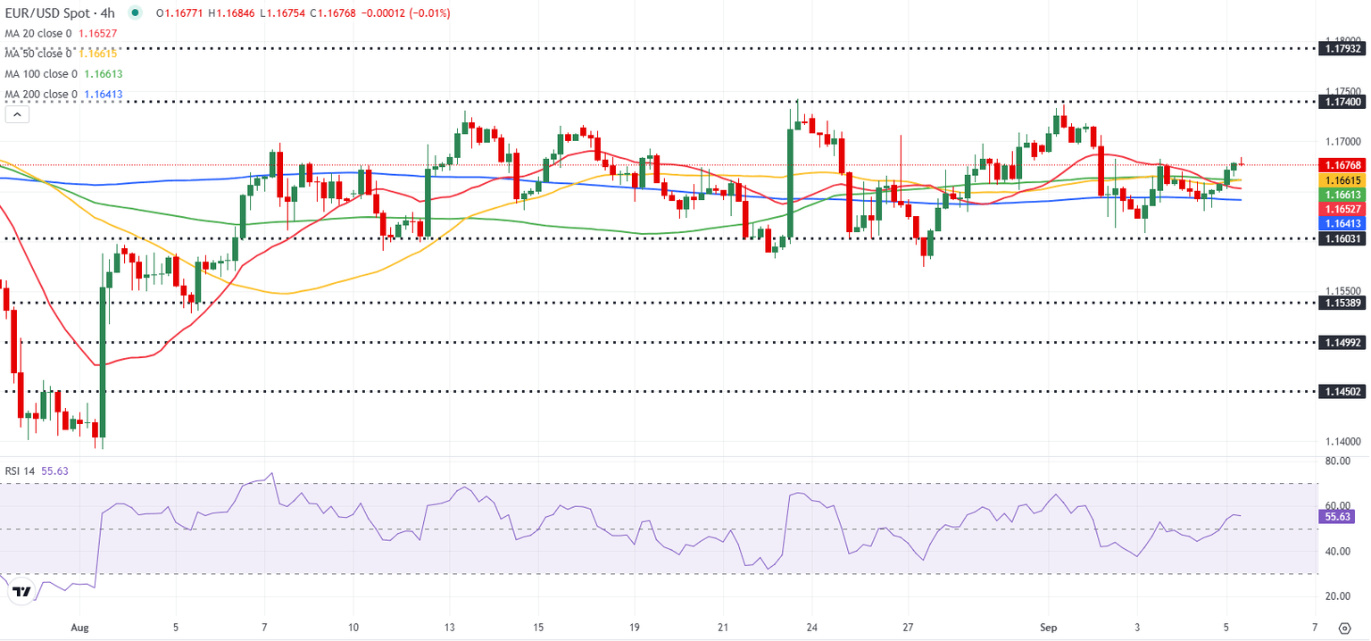 EUR/USD gains traction and climbs above 1.1650 in the European session on Friday after posting marginal losses on Thursday. The pair's near-term technical outlook hints at a bullish tilt as investors gear up for the release of the August employment report from the United States (US).