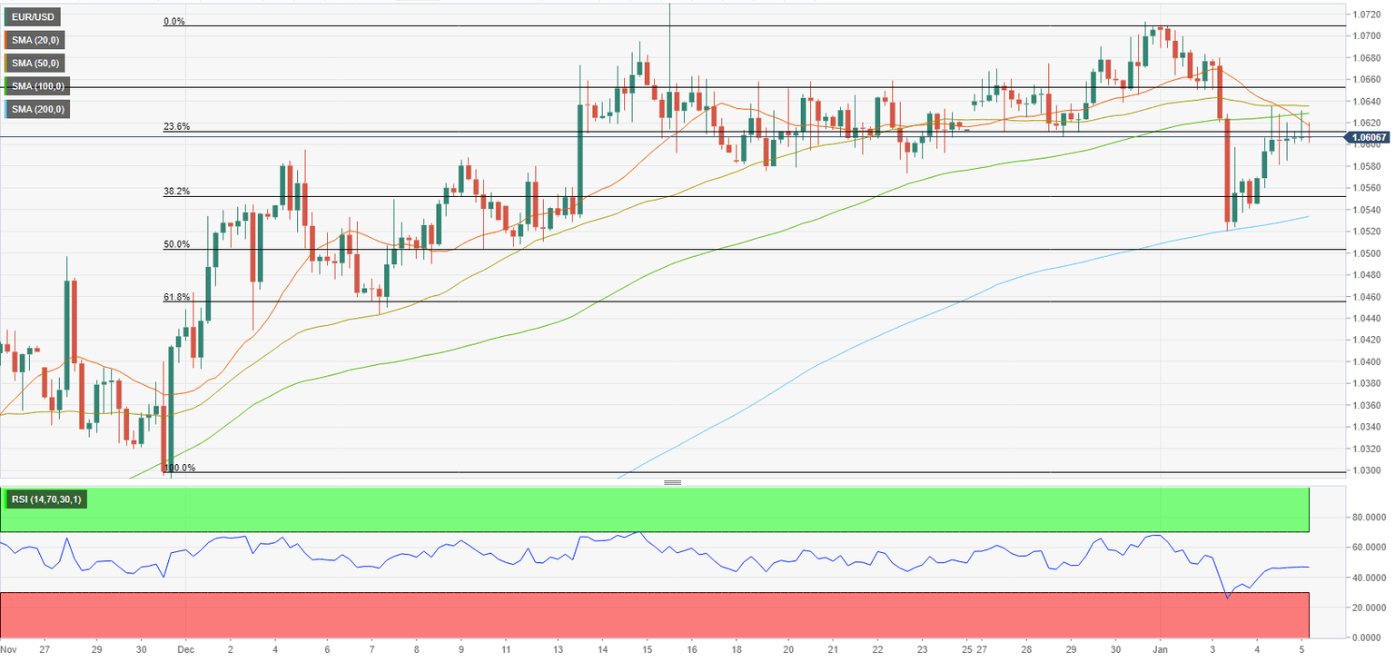 EUR/USD has been moving sideways in a tight channel near 1.0600 early Thursday after having managed to snap a two-day losing streak on Tuesday. The pair's technical outlook doesn't yet point to a buildup of recovery momentum and the Euro could have a difficult time finding demand in case markets remain cautious ahead of Friday's key data releases.