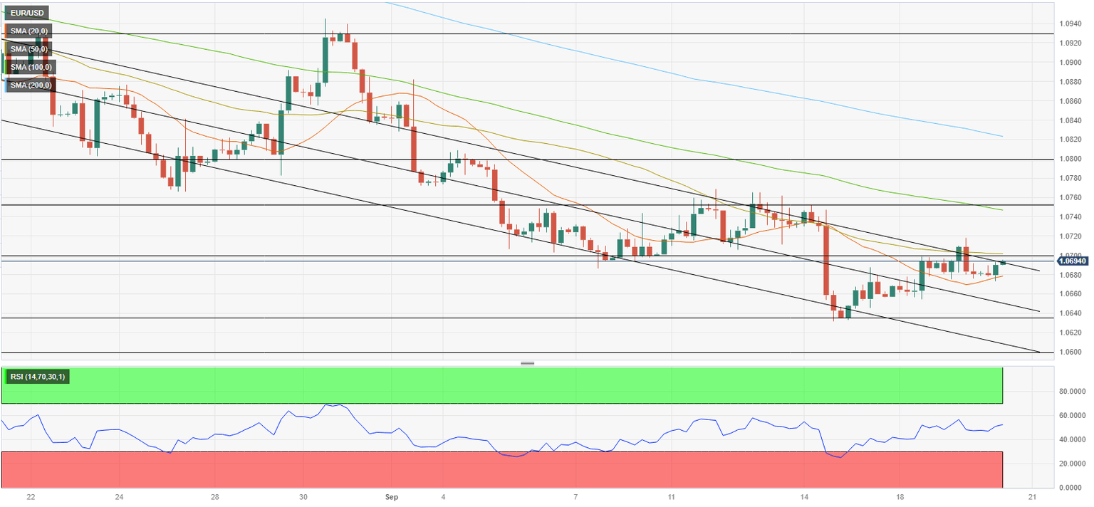 - EUR/USD continues to fluctuate in a tight channel at around 1.0700.