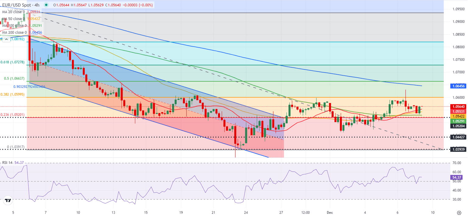 (This story was corrected on December 9 at 08:41 GMT to say EUR/USD holds steady at around 1.0550 in the European morning on Monday, not Friday.)