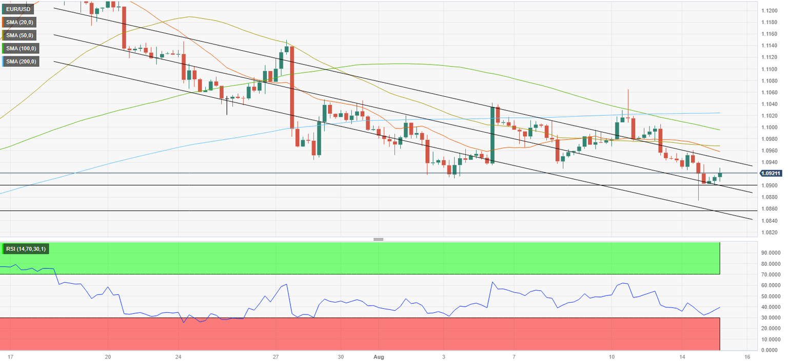 EUR/USD dropped below 1.0900 for the first time since early July on Monday but managed to close the day a few pips above that level. The pair needs to clear 1.0950 hurdle and stabilize above that level to extend its rebound.