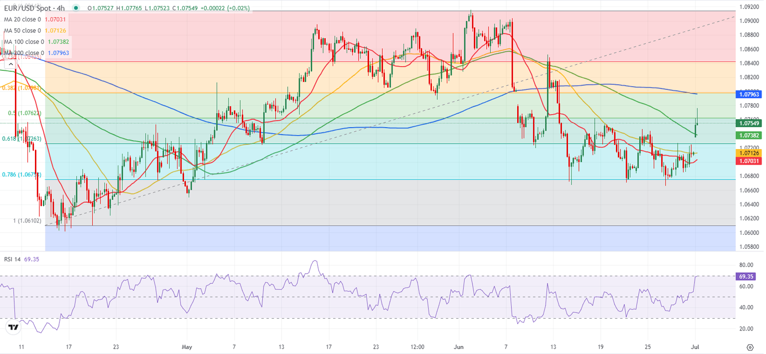 The Fibonacci 50% retracement level of the latest uptrend aligns as immediate resistance at 1.0760. In case EUR/USD confirms that level as support, 1.0800 (200-period Simple Moving Average (SMA) on the 4-hour chart, Fibonacci 38.2% retracement) could be seen as next resistance before 1.0840 (Fibonacci 23.6% retracement).