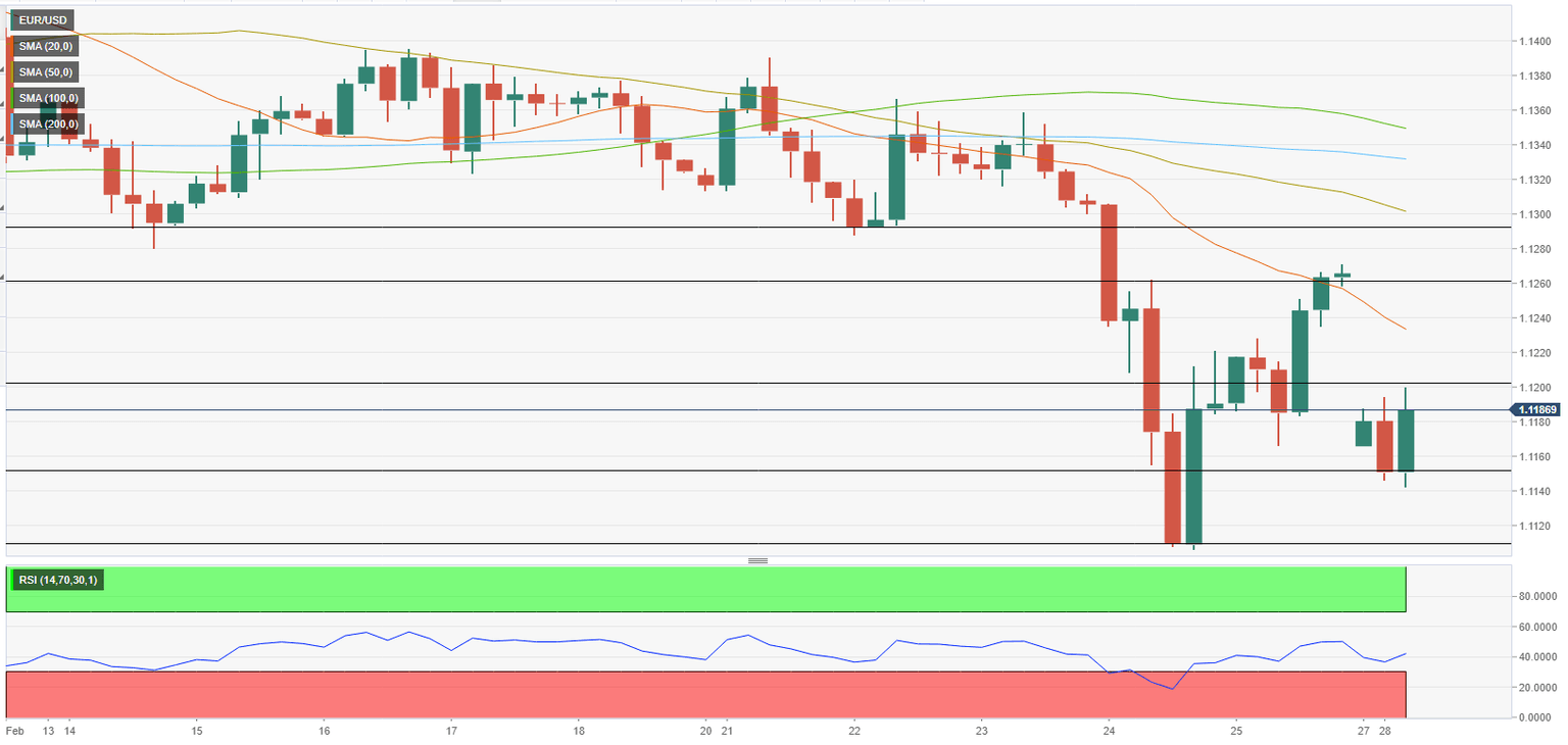 EUR/USD has opened with a large bearish gap on Monday with investors seeking refuge following the weekend's concerning geopolitical developments. The pair trades deep into negative territory below 1.1200 early Monday and it could find it difficult to shake off the bearish pressure in case safe-haven flows continue to dominate financial markets.