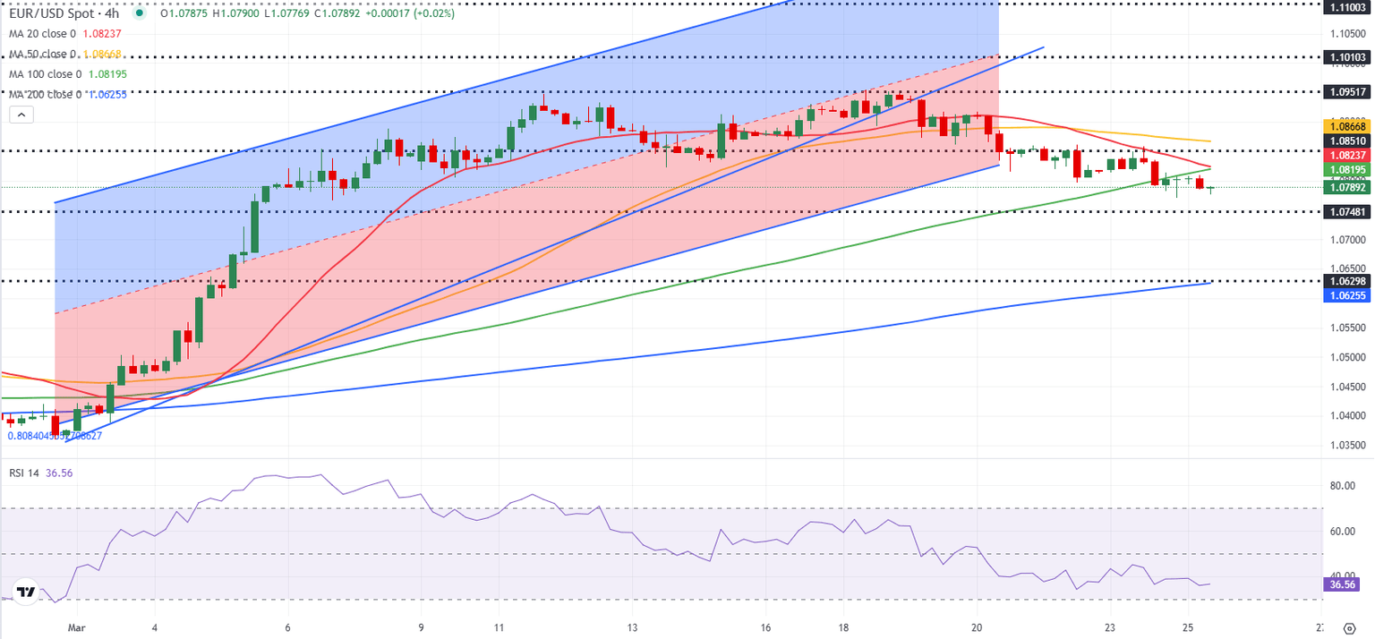 After rising above 1.0850 in the European session on Monday, EUR/USD reversed its direction in the American session and closed the day in negative territory. The pair stays on the back foot early Tuesday and trades below 1.0800.