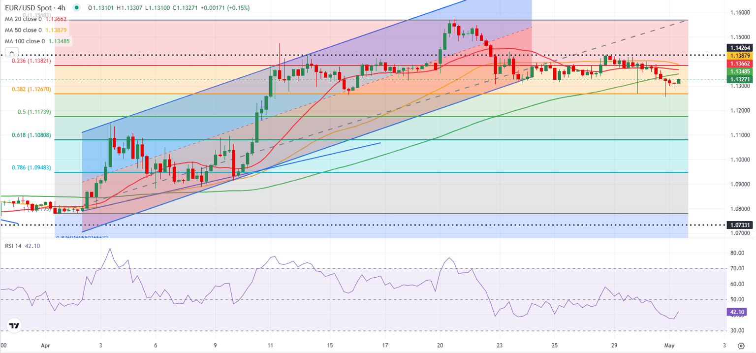 - EUR/USD holds above 1.1300 after dropping below this level earlier in the day.