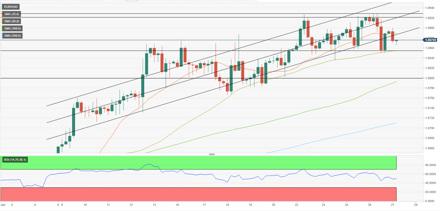 EUR/USD has continued to edge lower early Friday after having snapped a six-day winning streak on Thursday. The pair manages to hold above the key support that seems to have formed at 1.0850 but the near-term technical outlook reveals a lack of buyer interest.