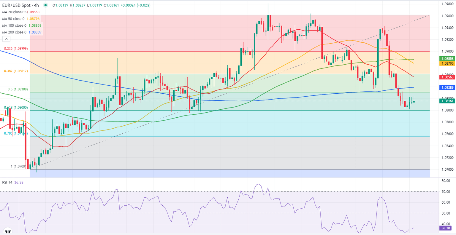 EUR/USD tested 1.0800 at the beginning of the week but managed to find support at that level. The pair clings to small daily recovery gains in the early European session but the near-term technical outlook suggests that the bearish bias remains unchanged.