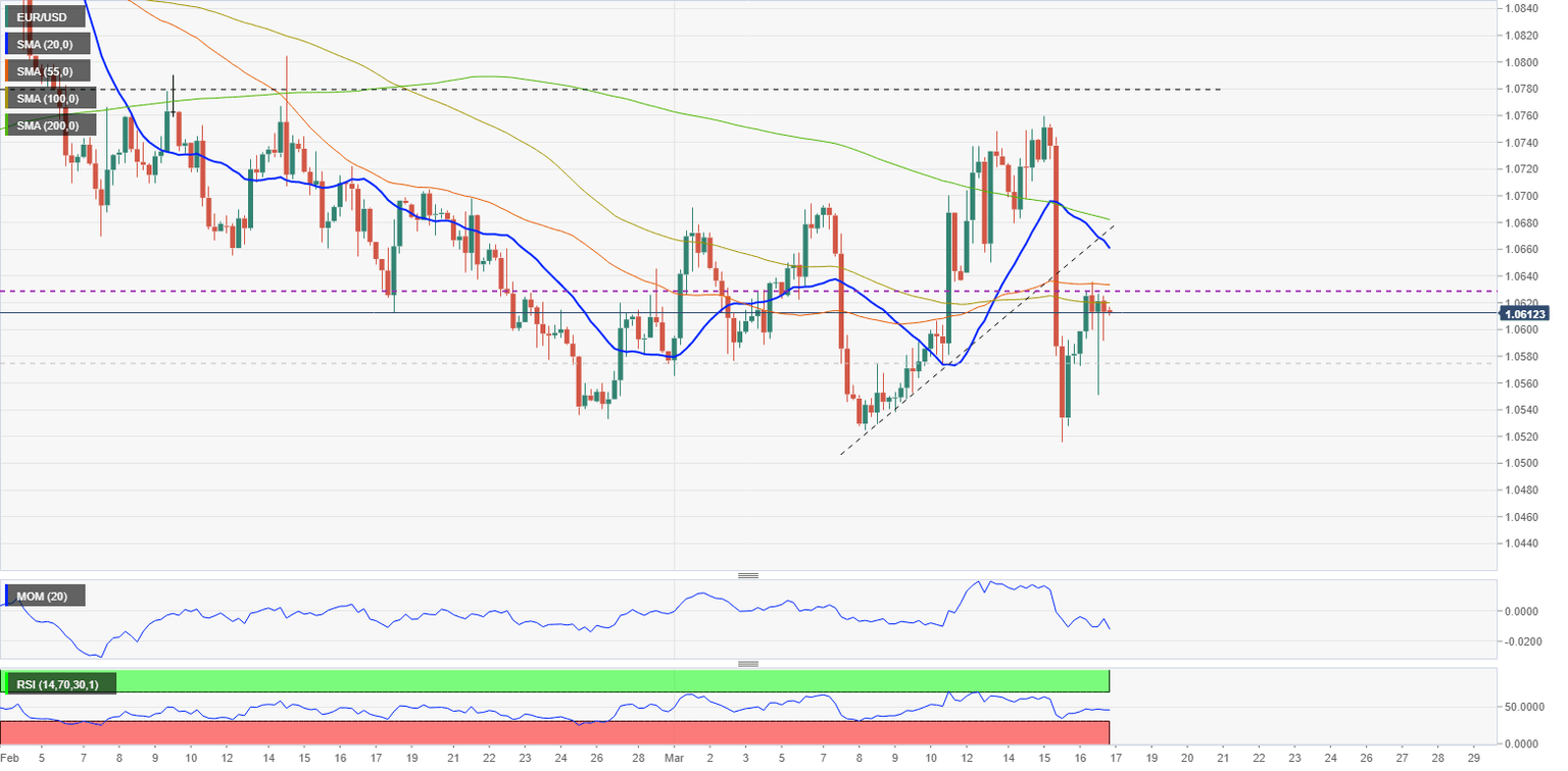 - EUR/USD limited above 1.0600, but far from 1.0500.