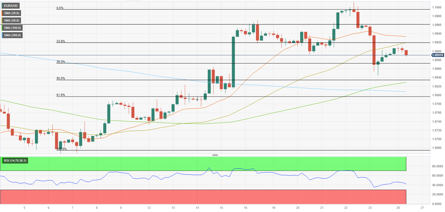 On the downside, 1.0870 (Fibonacci 38.2% retracement of the latest uptrend) aligns as interim support ahead of 1.0820/30 (100-period Simple Moving Average (SMA)Fibonacci 50% retracement) and 1.0800 (200-period SMA, Fibonacci 61.8% retracement).