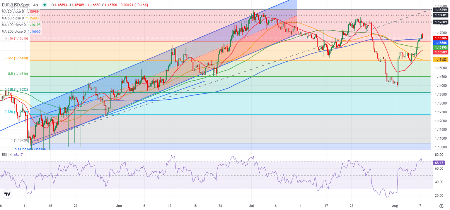 Following the sideways action seen earlier in the week, EUR/USD gathered bullish momentum and registered strong daily gains on Wednesday. After touching its highest level since July 28 near 1.1700, the pair seems to have entered a consolidation phase above 1.1650 in the European session on Thursday.