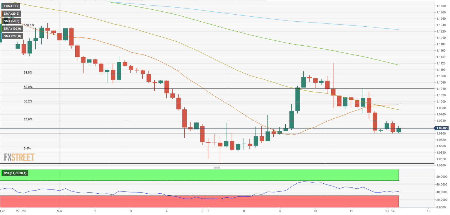 - EUR/USD has been fluctuating in a narrow channel above 1.0900.