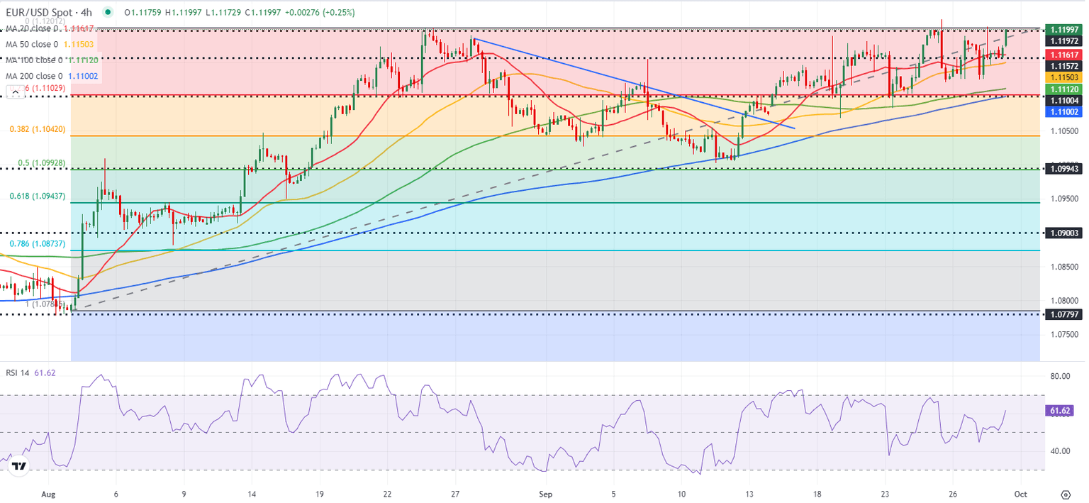 Powell will speak on the economic outlook while participating in a moderated discussion titled "A View from the Federal Reserve Board" at the National Association for Business Economics Annual Meeting, in Nashville, starting at 17:00 GMT. The CME FedWatch Tool shows that markets are pricing in a nearly 50% probability of another 50 basis points rate cut at the next meeting in November. If Powell pushes back the market positioning by voicing their willingness to continue to ease the policy in a gradual way, the US Dollar (USD) could find a foothold and limit EUR/USD's upside.