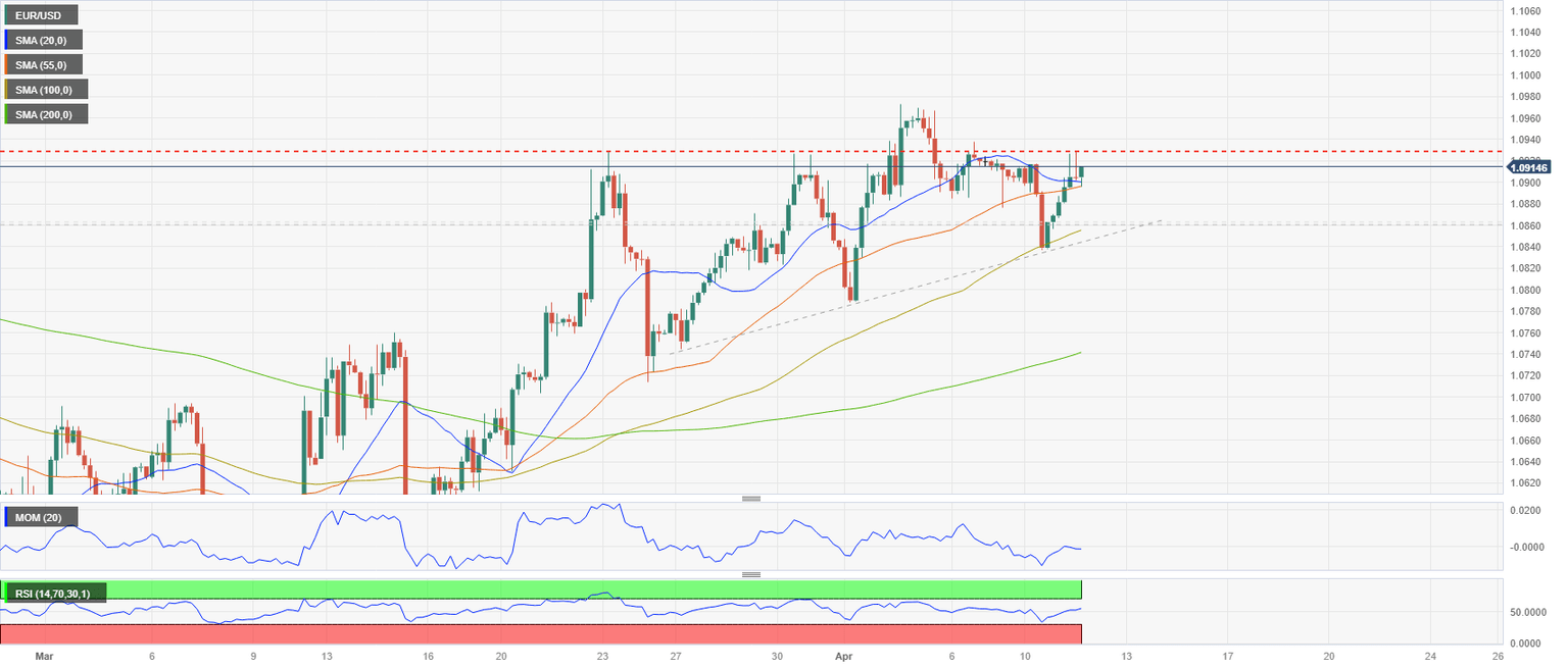 The EUR/USD rebounded from weekly lows as Europe returned from the Easter holiday, trimming Monday’s losses. The pair rose above 1.0900 and more, boosted by a weaker US Dollar ahead of critical US economic data and amid expectations of another rate hike from the European Central Bank (ECB).
