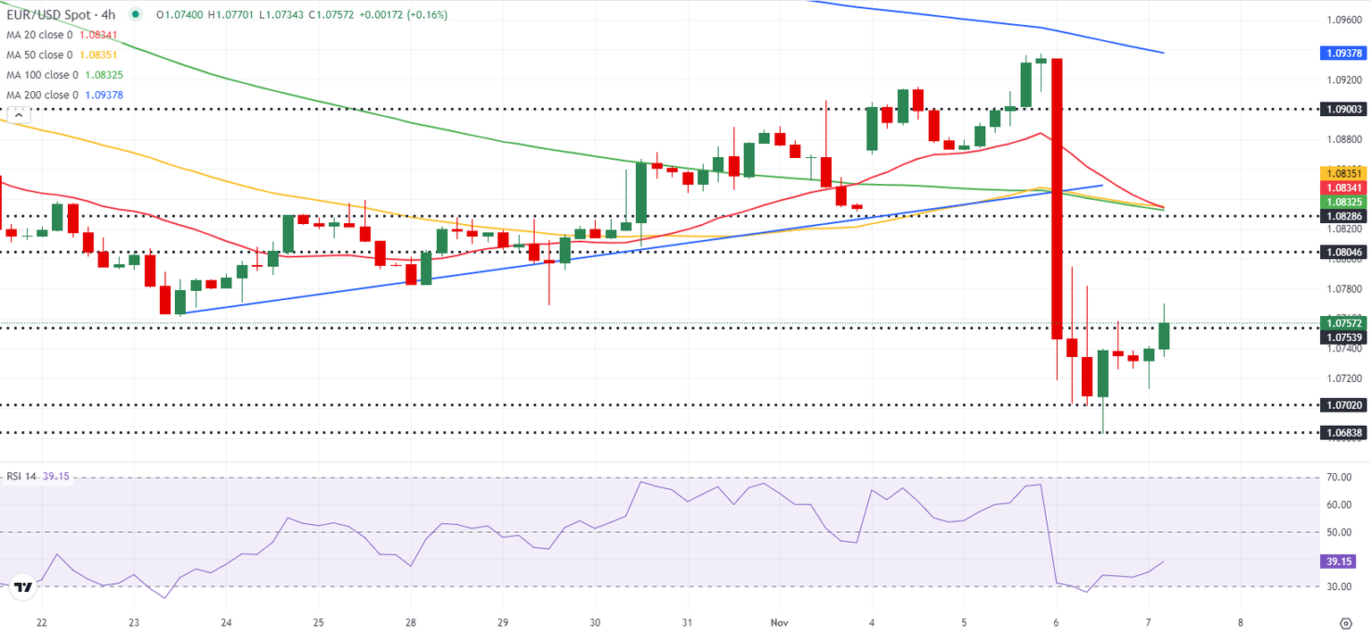 EUR/USD lost nearly 2% on Wednesday and touched its weakest level since late June below 1.0700. The pair stages a rebound early Thursday and trades above 1.0750 as market attention turns to the Federal Reserve's (Fed) monetary policy announcements.