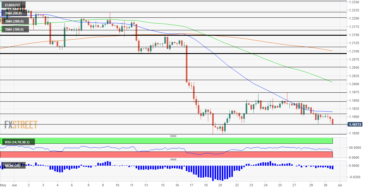 Critical support awaits at June's low of 1.1850, followed by 1.18 and 1.1760.
