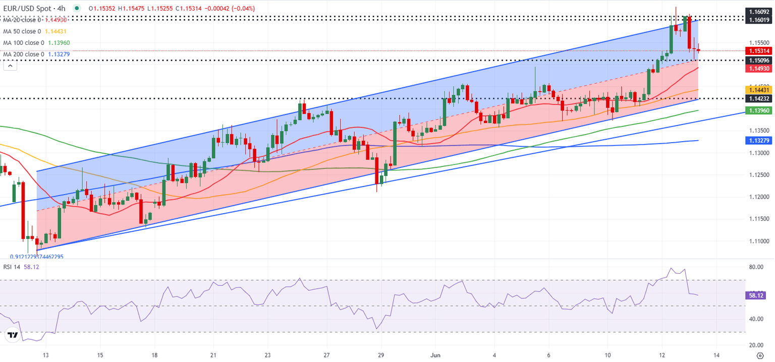 EUR/USD gathered bullish momentum and climbed to its highest level since November 2021 above 1.1600 on Thursday. With markets turning risk-averse on Friday, the pair corrects lower but manages to hold above 1.1500.